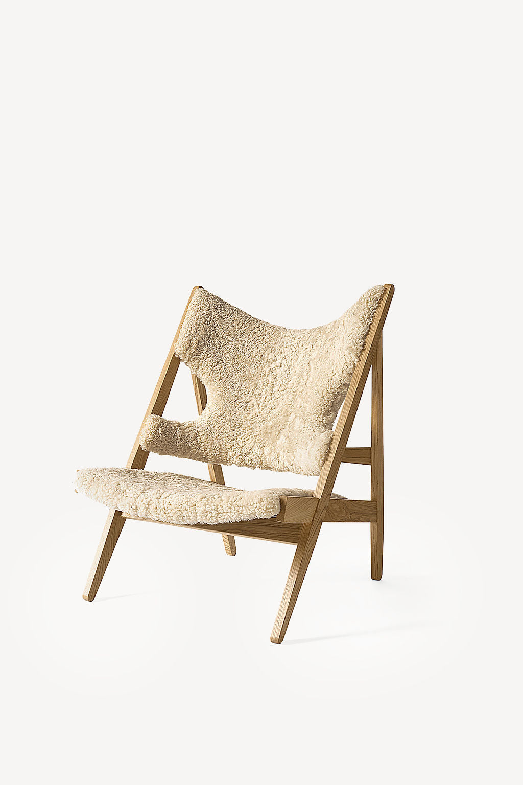 A design that has withstood the test of time, the Knitting Chair was created in 1951 during the Danish cabinetmaker's golden age. Defined by an exposed triangular construction, this lounge chair is exceedingly comfortable and allows one to sit for hours on end. The distinctive cutouts are perfect for reading or knitting, creative space to gently rest your elbows in.